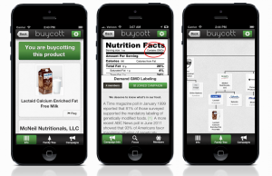 Um dos mais celebrados é o desenvolvido pela Buycott (um trocadilho com Boycott – boicote em português). Com ele é possível identificar, por meio do código de barras, se o produto foi produzido com transgênicos e até qual a política de aquisição de matéria prima de determinada empresa, etc. Pode-se, também, criar uma rede de boicote contra determinado produto até que seu fabricante altere a política que está sendo questionada.